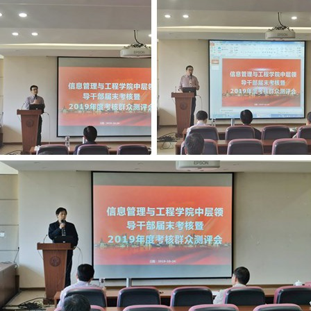 2019年10月24日下午,信工学院在9号楼302报告厅召开了信工学院中层领导干部届末考核暨2019年度考核群众测评大会,大会由学院党委副书记陆颋浩主持,校组织部副部长申屠莉、校机关党委李靓以及信工学院全体教职工参加了此次会议。