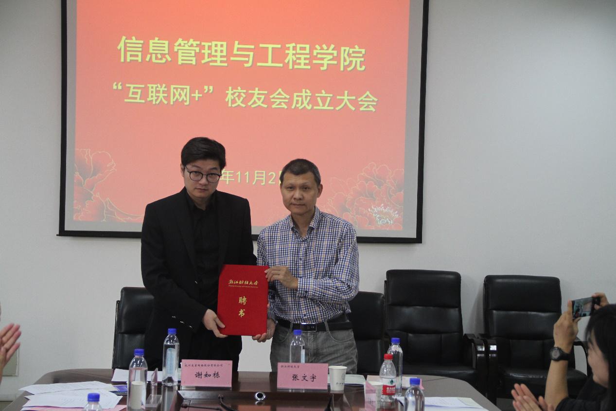 2019年11月2日,浙江财经大学信息管理与工程学院举办“互联网+”校友会成立大会。信工学院院长张文宇、杭州遥望网络股份有限公司董事长兼CEO谢如栋等优秀校友出席本次大会。会议由信工学院党委副书记陆颋浩主持。