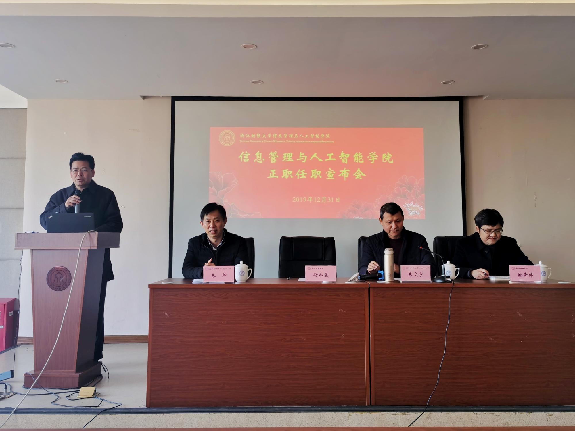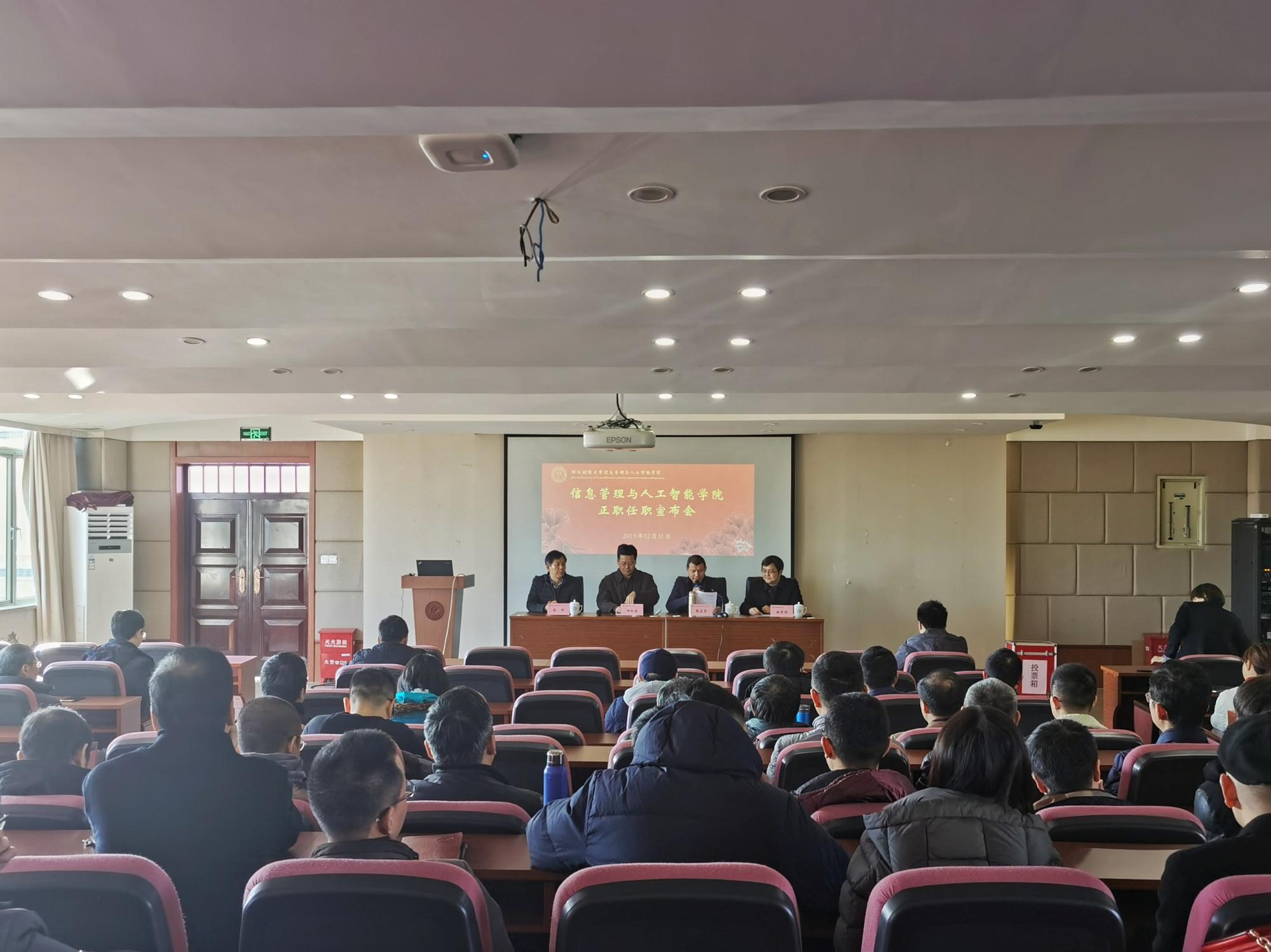 12月31日,信息管理与人工智能学院召开学院任职宣布大会,宣布学校党委关于信息管理与人工智能学院党委书记、院长的任命决定。副校长励如孟、党委组织部工作人员、学院领导班子成员以及全体教职工参加会议,会议由张文宇主持。