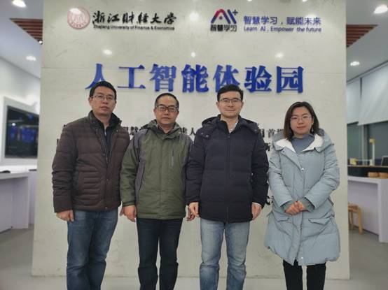 陈院长向客人的到访表示欢迎,并详细介绍了我院的专业设置和人才培养、实验室建设等情况。张登辉副院长介绍了浙江树人大学信息科技学院的专业概况和办学特色,此次来访正值学校人工智能实验室建设的筹划期,看到浙江财经大学在AI+经管特色的人工智能体验园建设特色,前来学习考察。双方围绕着高校人工智能专业的人才培养,实验室建设,实验教学与管理等内容展开了深入的交流。