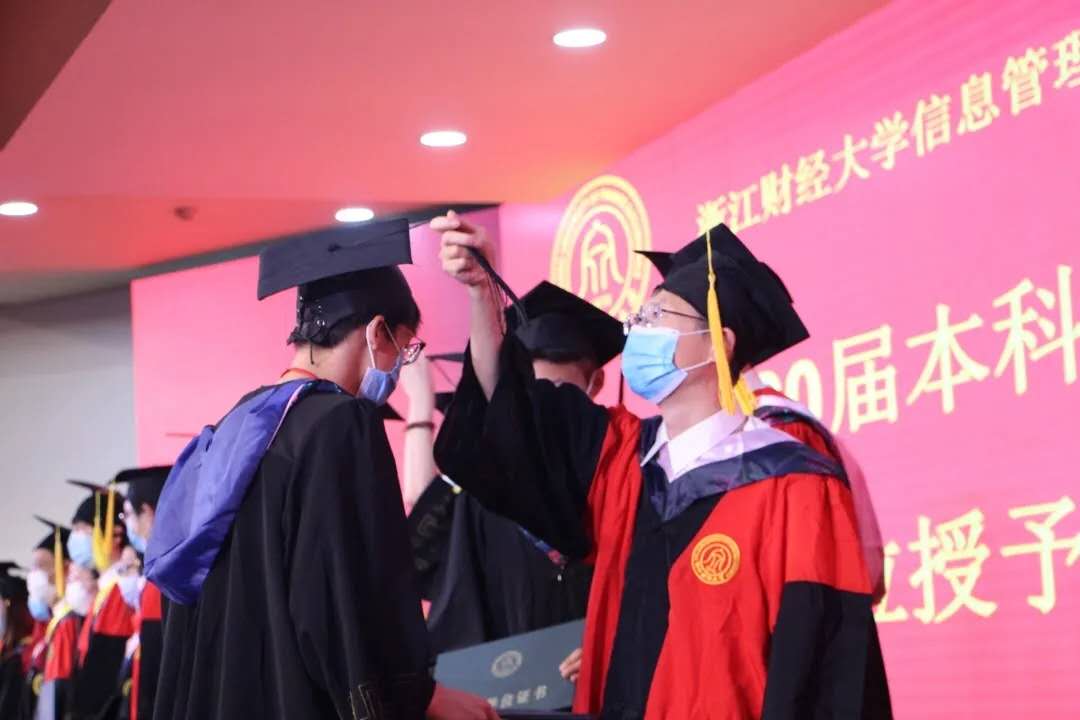 紧接着,我院进行了学位授予仪式。仪式上,老师们为每位毕业生颁发了毕业证书,并为他们拨穗正冠,热烈祝贺他们顺利毕业,祝愿他们在未来能大展宏图,为母校争光。毕业生们也纷纷表达了对自己谆谆教导四年的老师们的感谢与祝福,并进行了合影留念。