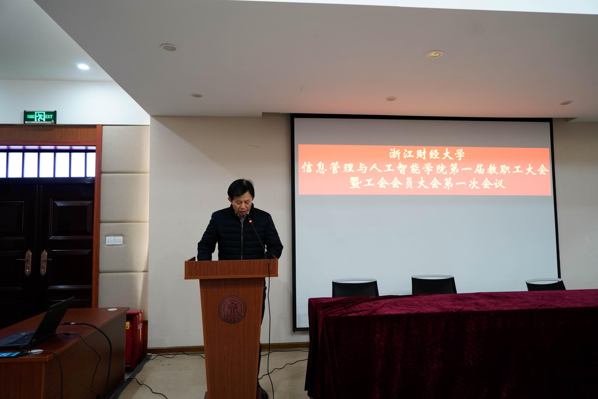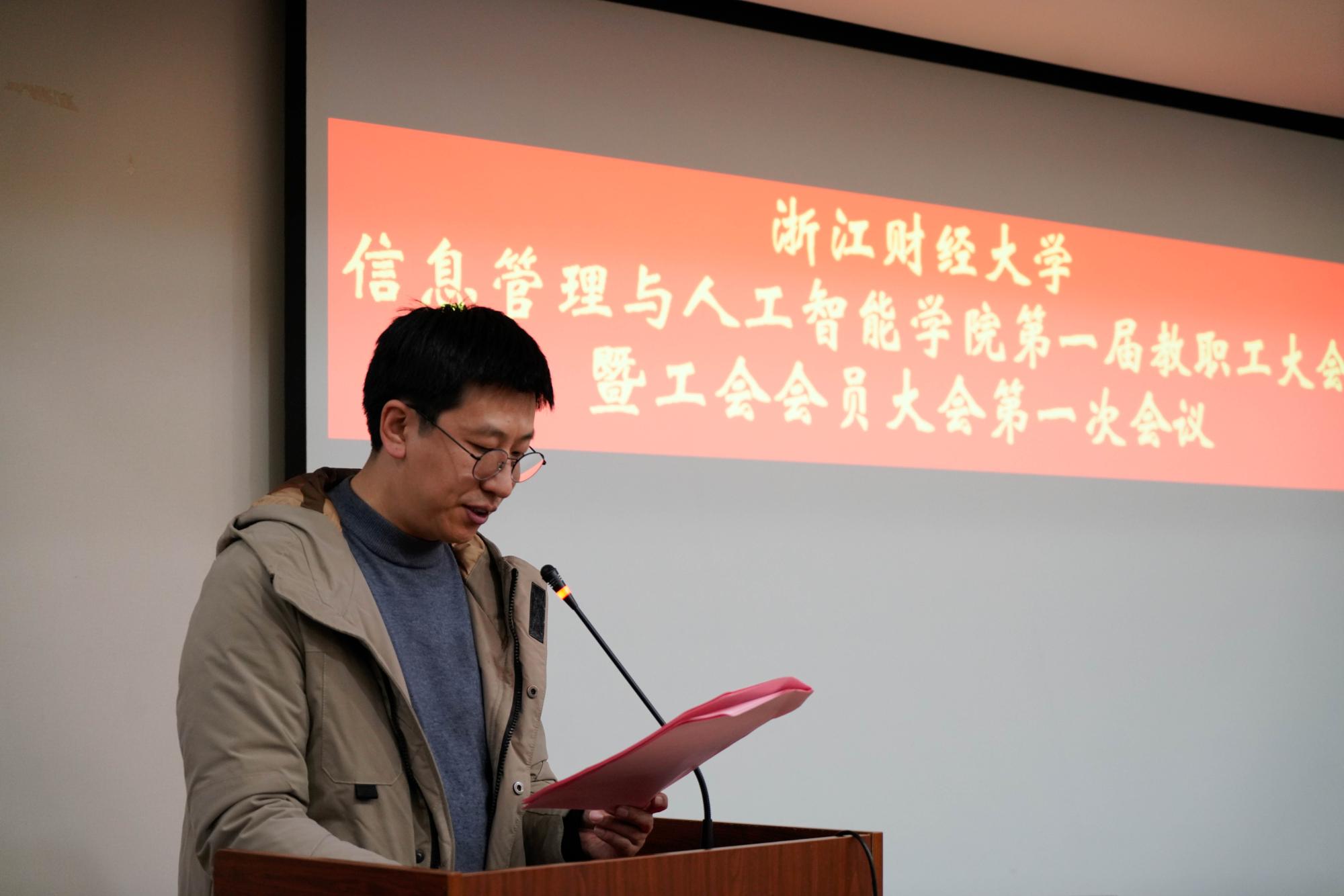 12月10日,信息管理与人工智能学院第一届教职工大会暨工会会员大会第一次会议在学院楼302会议室召开。校工会专职副主席陈思佳、学院领导以及全体教师出席了本次大会。