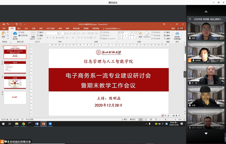 近日,电子商务系通过腾讯会议举办一流专业建设研讨会,布置了近期相关专业建设任务,讨论了人才培养的相关问题,本系教师全员参与。